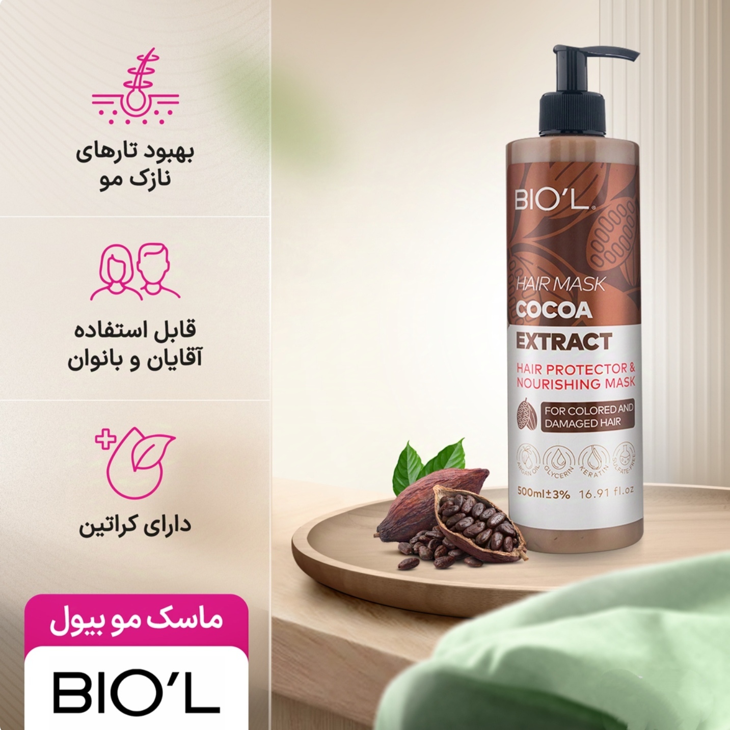 ویژگیهای کلیدی ماسک مو بیول کاکائو
